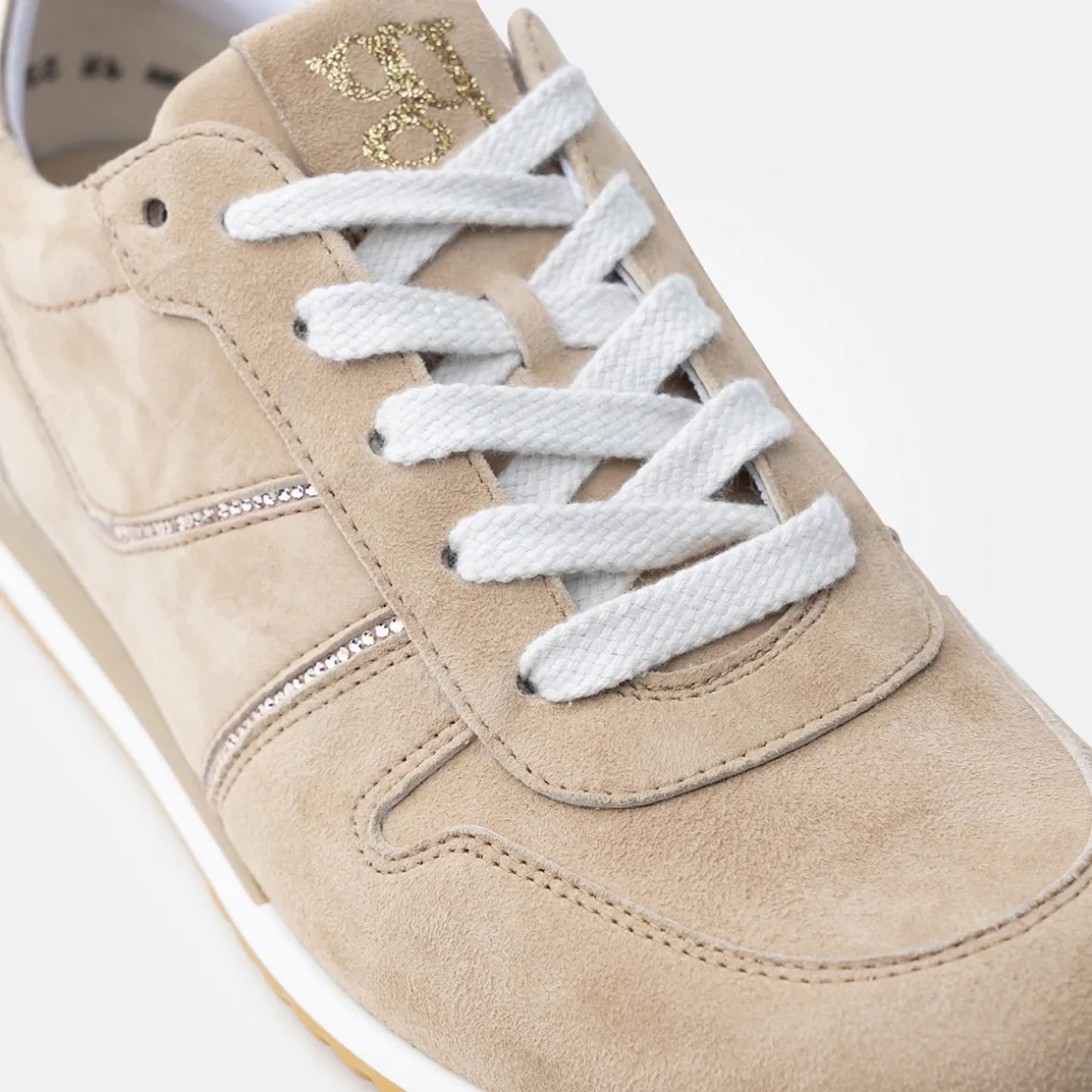 These SUPER SOFT trainers with a removable footbed by Paul Green impress with their comfortable style. This model made of soft velvet leather in beige has a sophisticated look and a comfortable feel. The glitter stripes on the side add a particularly exclusive touch. The removable removable footbed pampers you with a comfortable fit. A walking-friendly sole offers flexible comfort. A trendy pair for every outfit! Paul Green stands for women’s shoes of the highest quality, made with craftsmanship and passion. Each of our shoes is made by qualified master shoemakers in up to 160 steps. The result is quality that you can see and feel.