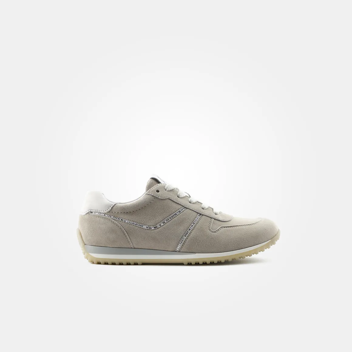 These SUPER SOFT trainers with a removable footbed by Paul Green impress with their comfortable style. This model made from soft velvet leather in gray has a sophisticated look and a comfortable feel. The glitter stripes on the side add a particularly exclusive touch. The removable removable footbed pampers you with a comfortable fit. A walking-friendly sole offers flexible comfort. A trendy pair for every outfit! Paul Green stands for women’s shoes of the highest quality, made with craftsmanship and passion. Each of our shoes is made by qualified master shoemakers in up to 160 steps. The result is quality that you can see and feel.